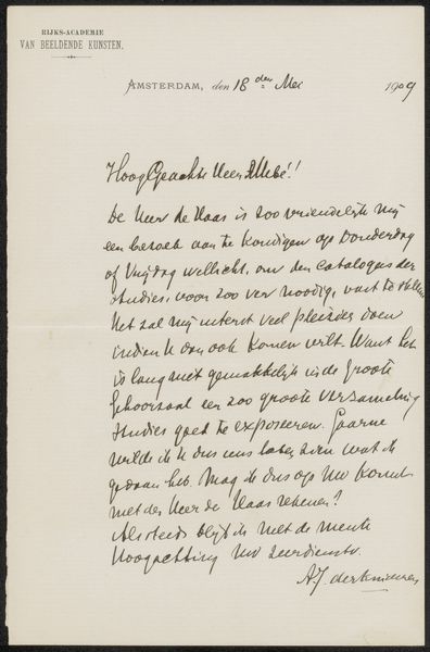 Curator: Antoon Derkinderen's "Brief aan Jan Veth," created sometime between 1874 and 1925, offers us an intimate glimpse into the artist's personal correspondence. The medium here is simple: ink on paper. Editor: It strikes me immediately as both raw and intensely personal. It feels like stumbling upon someone's innermost thoughts captured on a page, that hurried scrawl! There's a vulnerability here. Curator: Considering Derkinderen’s association with socialist ideals and his belief in the artist's social responsibility, a letter such as this unveils the interpersonal dynamics within intellectual circles. What we see materially is handmade typography in the tradition of calligraphy. Editor: Ah, so it's not just a rushed note. This 'handmade typography' suggests a care for the craft, a conscious artistry even in this informal setting. There is something very performative happening here, in this written act, where penmanship conveys something beyond the literal text. Curator: Exactly. This brings a different context into view: Derkinderen's practice moves past conventional notions of 'fine art' because here the medium is really about its accessibility for everyday exchanges. The letter is also heavily edited, we can infer censorship when five words were redacted by the sender from a February 7th letter. Editor: Censorship indeed...and a layer of hidden meanings or intentional silences enters the chat. What was redacted, and why? Also what are the implications and considerations, here, of making private correspondence like this, public? Curator: Well, there’s an inevitable friction that occurs whenever private correspondence gets archived. It raises some difficult questions about the ethical responsibilities of preserving materials in archives... Editor: This act of publicizing becomes part of the life of the document, forever shifting how we understand not just the words themselves, but also that original intent... Curator: And with that in mind, hopefully our listeners will pause on that ambiguity and reflect on the layers of this drawing. Editor: Indeed—a reminder that even the simplest materials, a pen and a piece of paper, can hold complex histories, don't you think?