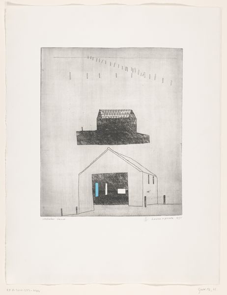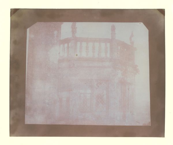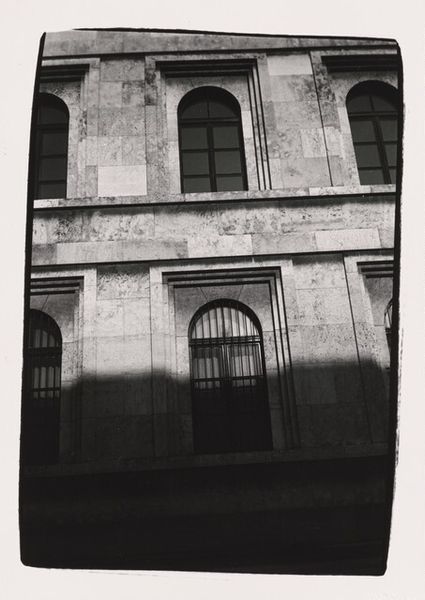 Editor: This small, undated photograph by Walker Evans features the facade of a red and white striped building with a turquoise door. The peeling paint gives it a kind of weathered charm. What can you tell us about the materials and context here? Curator: Note how the very process of decay becomes part of the artwork. The flaking paint reveals layers of history, a tangible record of labor and consumption over time. This challenges the traditional value placed on pristine objects, doesn't it? Editor: It does. So, the focus isn’t just on what is depicted, but how it came to be in this state? Curator: Exactly. Evans uses the photograph to document not just a building, but also the socio-economic forces that shaped its existence and eventual decline. It's about labor, materiality, and the cycle of consumption. Editor: That's a fascinating way to look at it. I hadn’t considered the social implications embedded in the materials themselves. Curator: Indeed. We often overlook how materials carry stories of production and use.