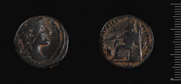 Editor: This is a Tetradrachm of Alexandria, dating back to the reign of Antoninus Pius. It's a small coin, yet it feels like a direct link to the Roman Empire. What can you tell me about its historical significance? Curator: These coins were tools of imperial propaganda. How do you think the Roman emperors used these images on coins to project power and maintain control over vast territories like Alexandria? Editor: So, it wasn't just currency; it was a message broadcast across the empire. Curator: Precisely. The act of minting and distributing these coins served as a constant reminder of Rome's authority and the emperor’s image. Consider what messages these images conveyed and how people may have reacted to them. Editor: It’s amazing to think that something so small could carry so much political weight. Curator: Exactly! Objects like these help us understand the relationship between art, power, and everyday life in the Roman Empire.