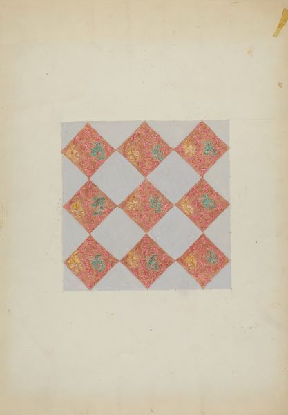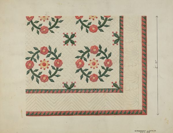 This "Quilt" by Therkel Anderson is an image of a quilt design that looks to have been made with pencils on paper. The planning of this quilt is so precise, with its feathery background, and those bold pink flowers. When you look closely you can see the hand of the artist, or maybe I should say the crafter in the mark making: the texture of the pencil on paper, the way the curves of the flowers are slightly uneven, all that detail is what makes the image so compelling. There's something about the physicality of the medium that gives it such an emotional resonance. And look at the way the feather pattern is used to surround the flowers, almost like a halo! You might think of it as a kind of folk art, but in a way, all art is folk art; we're all just trying to make something beautiful and meaningful out of the materials we have at hand, exchanging ideas across time. Ultimately, it's up to you to decide what it means.