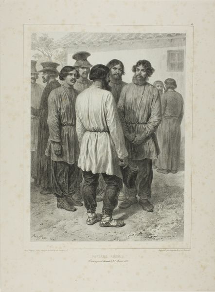 Auguste Raffet made this lithograph titled "Karaimes, Théodosie, Kaffa, 1 Octobre 1837" without a specific date, and it captures a group of Karaite Jews in what is now Crimea, Ukraine. The image presents the men in their traditional clothing, reflecting the cultural identity of this small ethno-religious group. The background depicts a simple landscape, suggesting a close-knit community living somewhat separately. In 1837, Crimea was part of the Russian Empire, which had a complex relationship with its diverse ethnic and religious groups. The Russian government often sought to categorize and control these communities through policies that sometimes encouraged assimilation and at other times fostered division. To understand this work fully, historians might consult travel literature, ethnographic studies, and government documents from the period. Raffet's lithograph is a reminder that art can serve as a valuable document, reflecting the social and institutional contexts in which it was produced.