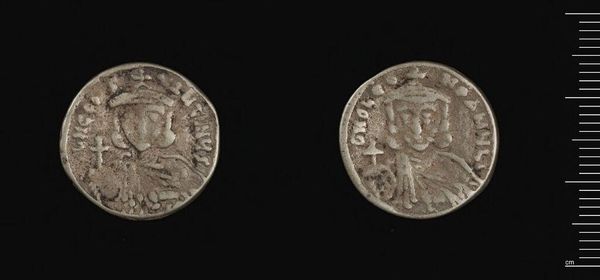 Editor: This is a gold coin of Leo III. The details are incredible for such a small object. What can you tell me about its visual composition? Curator: Note the careful balance between the ruler's portrait and the cross on steps. The inscription encircles both sides, creating a closed, self-referential system. Observe how the lines define volume despite the flattened, two-dimensional form. Editor: It’s interesting how the lines create depth. What does that imply? Curator: It directs us to consider form over narrative. The coin privileges symbolic representation and its intrinsic artistic qualities above all else. Does that resonate with you? Editor: Absolutely, focusing on the visual elements unlocks a deeper understanding. Curator: Indeed. By examining the structure, we gain insight beyond its immediate function.