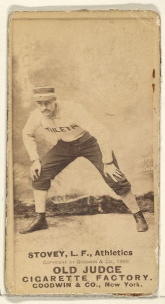 This photographic print of Bill Kuehne was produced as a promotional card for Old Judge Cigarettes, around 1888. These cards capture a moment when baseball was rapidly gaining popularity in the United States, reflecting broader social and cultural shifts. The image itself, with Kuehne posed in his uniform, speaks to the emerging celebrity culture surrounding athletes. But it also hints at the commercial forces at play; these cards were not just about celebrating sports, but about selling tobacco. Goodwin & Company, the cigarette manufacturer, leveraged the popularity of baseball to market its products, embedding itself within the cultural fabric of the time. Understanding this image requires looking at the history of American consumer culture and the rise of professional sports. One might consult advertising archives, sports history journals, and sociological studies of leisure and consumption in the late 19th century. Approaching art from this perspective reminds us that images are not neutral; they reflect and shape the social and institutional contexts in which they are created.