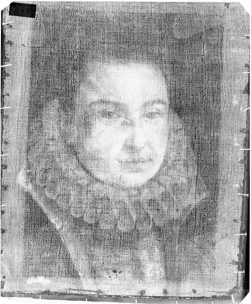Editor: This X-radiograph of Holbein's "Man; Woman" reveals so much texture. The wood grain is really prominent. What stands out to you in this image? Curator: Notice how the X-ray unveils the materials and labor usually hidden beneath the painted surface. The wood panel's structure dictates the artwork’s very existence. It highlights art as a product of material and process, challenging our typical focus solely on the image. Editor: That's fascinating! I never considered the wood's role so directly. Curator: Exactly! The means of production become visible, prompting questions about the consumption and valuation of art. Editor: So, it makes me think about the commercial aspects of art production too. Thanks for sharing that perspective. Curator: Of course! Thinking about the materials and labor adds another rich layer to appreciating art.