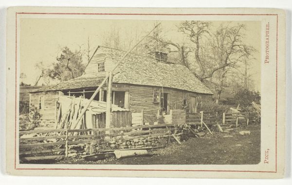 Curator: Let's turn our attention to a photograph from 1865 titled, "Prof. Maillefert and Naval Officers Employed to Remove Gunpowder from Confederate Torpedoes, James River, Virginia," a gelatin-silver print currently residing here at the Met. It captures a moment right at the close of the American Civil War. Editor: Whoa. Just look at the starkness. It feels incredibly weary. The bare trees, the unadorned cabin, and those figures, just...slumped. The light feels almost hesitant, you know? As if even the sun isn't sure what to do now that the fighting's over. Curator: Precisely. Consider the historical weight. Here we have Professor Maillefert, a key figure in naval salvage, overseeing a profoundly dangerous task. Removing gunpowder from Confederate torpedoes was vital to ensuring safe passage on the James River and rebuilding efforts. Editor: Danger clinging to everything, even after the surrender. You can almost taste the gunpowder, feel the tension... But, there's also something very human here, wouldn’t you agree? Men just…waiting, perched on that log or sitting next to each other on the house’s porch. There’s a camaraderie in their shared weariness. Curator: Absolutely. This photograph, in its seemingly simple composition, speaks volumes about the immediate aftermath of the war. The labor, the risks, and the subtle shift in power dynamics are palpable. The choice to focus on this specific, arguably mundane, operation highlights the critical role of engineering and infrastructure in the process of reconciliation and Reconstruction. It reveals an interesting parallel, suggesting these seemingly simple operations held the most complexity, but are rarely remembered. Editor: Mundane maybe on the surface, but it shows a different side of peace, right? It’s not just signing papers. This is men risking life and limb still to erase the vestiges of war and make the waters safe again. Makes you wonder what happened to those faces perched by the walls, what they went on to do. Curator: Indeed. I'd add, though, the photograph offers a snapshot—excuse the pun—of a larger societal shift. Photography played an increasingly important role in documenting and shaping public perceptions of the war. Editor: Well said! It truly speaks to the layered history of a single, stark image. Curator: I concur; it’s quite sobering how powerfully that story emerges.
