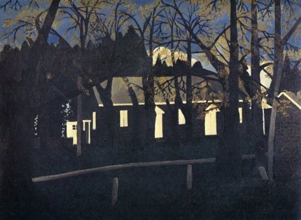 Horace Pippin's "Birmingham Meeting House III" is a painting that lays it all bare, in a good way. There’s a directness to the way Pippin applies the paint, almost like he’s building with it. Look at how each stone in the building is carefully rendered, each one distinct, yet fitting into a larger whole. You can tell that he's not trying to trick you with illusions, but instead showing you how he sees and understands this place. I love the stark contrast between the dark, looming trees and the bright white windows and doors. It’s like the building is glowing, holding its own against the weight of the natural world. That little patch of blue sky peeking through the branches? It feels like a small, hopeful breath, like a memory. It reminds me a little of Milton Avery's simplified forms and bold color choices, but with a raw, personal edge that’s all Pippin’s own.