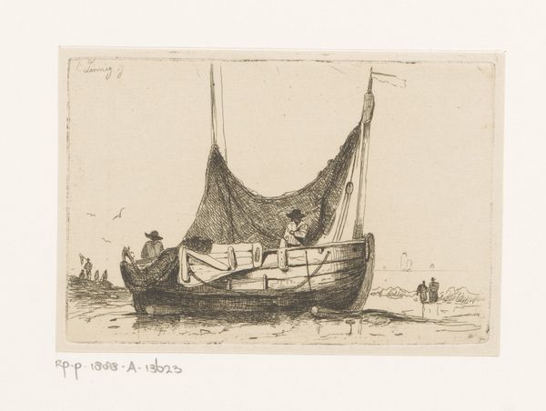 Editor: So, this is an illustration for Grundtvig’s "Den signede dag," made between 1887 and 1891, and currently held at the SMK. It seems to be ink drawings and etchings. What immediately strikes me is how it evokes a feeling of both serenity and slight melancholy. The cherubic figures contrast with the almost desolate landscape. How do you interpret the symbolism at play here? Curator: The artist certainly taps into powerful visual tropes. The angels, for instance, are a deeply rooted symbol, initially messengers of the divine, but overtime carrying layers of innocence, guidance, and even loss, especially prevalent in the Romantic and Symbolist movements. Notice how they are rendered almost as androgynous figures, adrift. Does that strike you as intentional? Editor: It does. There's a sense of ambiguity in their portrayal, their wings are delicate and quite small. And that castle looming in the distance seems less a place of refuge and more of a distant ideal. Curator: Precisely! The castle as a symbol carries its own weight: aspirations, unattainable desires, the spiritual home. And situated as it is, atop a cloudy peak, the path is obscured. I would say, notice how the water, rather turbulent in places, speaks to emotional unease, or perhaps a spiritual journey fraught with obstacles. Even the lone boat represents human passage, our constant striving. What about the light? Do you find that resonates too? Editor: Yes, that faint sun – almost hidden – evokes a sense of hope, but also a veiled promise, something not easily grasped. It all suggests a complex internal landscape rather than a literal scene. Curator: A visual poem of the soul, wouldn’t you say? The symbols become keys that unlock deeper meanings. It reflects a universal yearning that transcends time and individual experience. Editor: I agree. I'll definitely look at romantic landscapes differently after this!