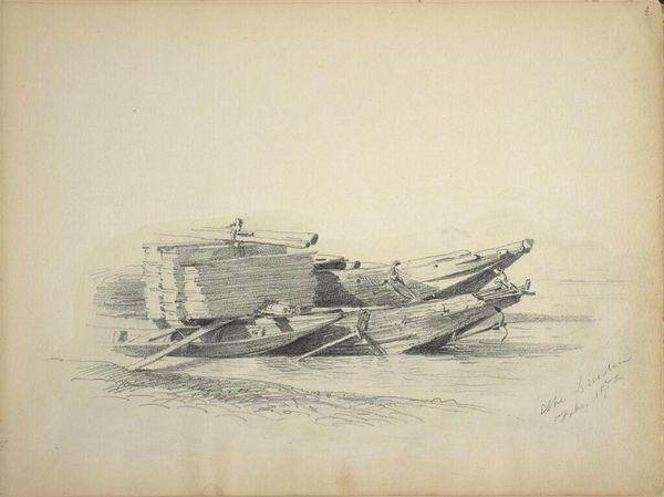 Editor: Here we have John Singer Sargent’s "Boat with Figures." It's an intriguing sketch, seemingly unfinished, with so much empty space around the subject. What do you see in this piece, something beyond the obvious subject? Curator: The emptiness itself speaks volumes, doesn't it? Sargent, ever the master of suggestion, leaves so much to our imagination. The boat becomes a vessel not just for figures, but for our own projections, our longing for journeys, perhaps? And that sketchy hand on the verso—a fleeting glimpse of humanity, or maybe Sargent acknowledging his own hand in creation? Editor: That’s interesting. I hadn't thought of the emptiness as deliberate, or the hand as Sargent's own. Curator: Well, perhaps it's a flight of fancy, but art is so much more exciting when we allow ourselves to be carried away, isn't it? We can find our own personal meanings and make this piece a bit more lively. Editor: Absolutely, I see the piece in a completely different light now. Thank you.