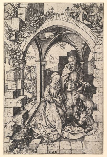 Israhel van Meckenem created this engraving of Saint Ottilia in the late fifteenth century during a time of significant religious and social change. The image depicts Saint Ottilia, the patron saint of eyesight, kneeling in prayer while an angel pulls a devil-like figure from beneath an altar. Ottilia herself was born blind, and according to legend, regained her sight upon being baptized. Her story speaks to the experiences of those living with disabilities and the hope for healing or acceptance. In the print, the suppression of the demonic figure can be understood in a broader context as representative of the struggle between good and evil, a common theme in the religious art of the time. Yet, it also invokes the historical persecution of those deemed ‘different’ or ‘sinful’. This artwork not only reflects the religious beliefs of the period but also invites us to consider the treatment of individuals with disabilities and the societal attitudes towards physical and spiritual well-being.