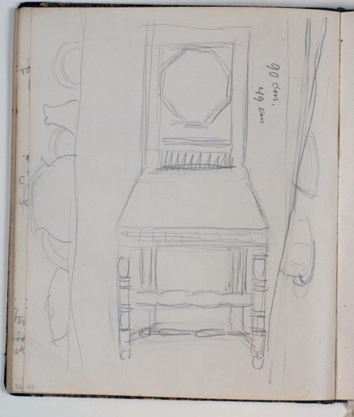 Curator: What catches my eye immediately is the fragility, the ephemeral feel of this sketch. It's like peering into the artist's most intimate thoughts on loss. Editor: That’s interesting because the work before us is titled "Udkast til Ester Balles gravmæle," which translates to "Draft for Ester Balle's Gravestone." It’s a pencil drawing on paper from 1906 by Niels Larsen Stevns, housed at the SMK, the National Gallery of Denmark. Curator: A gravestone... yes, there's a stillness, a contemplative quality to the vertical lines. I see columns, possibly, architectural elements... they suggest stability but rendered so delicately. And those shapes inscribed, they're less inscriptions and more a language that points toward a story, now fragmented in our grasp. What kind of psychological place do gravestones represent? Is this work offering a reflection on mortality, perhaps? Editor: These visual elements certainly appear laden with symbolism. It feels less like a cold depiction of a monument and more like a tender contemplation. We can imagine Niels Larsen Stevns in his studio, considering the gravity of remembrance and commemoration while exploring his medium's raw possibilities. In doing so, he invites us into that space as well, to meditate on how memories can and should take shape. Curator: And it's so interesting that the pencil, something so fleeting, should be used to capture something as permanent as a gravestone. Maybe the transience of the medium mirrors our own ephemeral existence. Even in the face of mortality, beauty, however transient, remains. Perhaps beauty serves as the doorway to peace and memory for those who mourn the absence of a loved one. Editor: In these rapidly sketched forms, we find ourselves contemplating not only the finality of death, but also the continuing story of how the departed are immortalized. A tangible, material remembrance crafted so it could serve its sacred purpose—a lasting tribute that extends beyond time. Thank you for your perspective, that’s so important to consider. Curator: And thank you. Considering artistic visions that give form to emotions is a real gift.