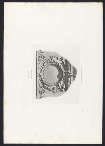 Curator: This printed work showcases three reliefs with fruit, foliage, and spearheads sculpted by Jean Herman sometime before 1880. The arrangement immediately gives me the impression of an architectural study or even a design proposal. What do you think? Editor: It does have a cool, almost clinical aesthetic, doesn’t it? These precise arrangements, along with the monochrome, feel designed to remove any emotional messiness from what would likely be very ornamental elements. I mean, look at that central lunette, pregnant with symbolism both aggressive and fertile! Curator: Precisely! Spears are potent symbols of authority and defence, juxtaposed against fruits and vines that traditionally symbolize abundance, festivity, and divine grace. There’s a delicate tension there. Could it be that the artist, Herman, was exploring ideas of a society that has both the force to protect itself and the means to thrive? Editor: It's certainly worth considering the societal function of such decorative motifs, which were often intended to communicate wealth and taste but also to visually encode a sense of inherited cultural authority. Look at the strategic placement of an empty frame at the center of that relief. A deliberate statement about who belongs and who’s left out of these carefully-crafted idylls, perhaps? Curator: Or perhaps more straightforwardly, an invitation for a patron's coat of arms? Still, I agree that these recurring emblems reinforce cultural memory and affirm hierarchical structures. Note the almost classical treatment of the foliage; this isn't mere decoration. Editor: I keep returning to how cool the composition is. Despite these classical motifs, these feel incredibly staged and carefully arranged. This calculated aesthetic invites us to really reflect on these items, but almost, from arm’s length, a deliberate and slightly subversive choice! Curator: Subversive indeed. These stylized forms reflect their period, revealing both the beauty and tensions present in 19th-century academic and decorative art. I am left wondering how these classical tropes can exist harmoniously in our modern-day dialogue. Editor: The question is whether these objects should exist harmoniously today. Perhaps more productive to explore ways we might reinterpret their inherited symbolism through contemporary critique and reclaim a new symbolism for ourselves.