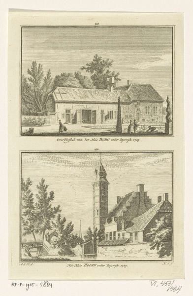 Carel Frederik Bendorp created this print of Driesum using etching and engraving techniques. It offers us a glimpse into the social and economic structures of the Netherlands during the 18th century. The upper scene depicts the village of Driesum, anchored by a towering church. It’s a snapshot of community life, with figures walking the path, perhaps engaged in daily commerce or social exchange. Below, Rinsma State presents a stark contrast. A lone rider on horseback with his dog evokes the landed gentry, a class of individuals set apart. The print underscores the disparities in Dutch society, a world where class dictated access and experience. Bendorp's work invites us to reflect on the relationship between the individual, their community, and the spaces they inhabit. How does the artist engage with the socio-economic landscape of his time and what does it tell us about identity and belonging?