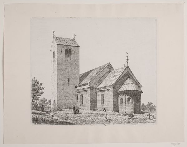Julius Magnus-Petersen made this print of Gumlöse Church in Skåne using etching, a printmaking technique dependent on acid. The process begins by coating a metal plate with a waxy, protective layer. The artist then scratches an image into the wax, exposing the metal beneath. When acid is applied, it bites into these exposed lines, creating grooves. Ink is then applied to the plate, filling these grooves. Finally, the plate is pressed onto paper, transferring the image. Here, Magnus-Petersen uses line etching, which is particularly well-suited to architectural subjects. Notice how the etched lines define the church’s brickwork and the details of its structure. The technique allowed for a high level of detail, which suited the cultural interests of the time – an era in which architecture came to be seen as a reflection of national identity. This print demonstrates the way the etching process makes possible the cheap, widespread distribution of architectural images, fueling the rise of nationalist sentiment and the celebration of a shared cultural heritage.