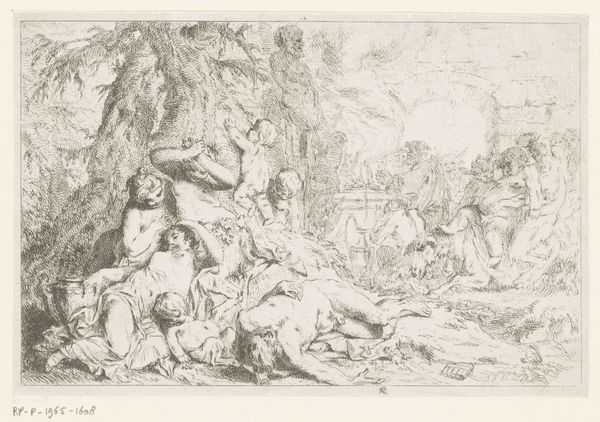 This etching, titled *Herder met kudde en vier muzen*, was produced by Christian Wilhelm Ernst Dietrich in the 18th century. Dietrich worked in the courts of Dresden, where he was also director of the art academy. The image shows a shepherd with his flock in an idealized pastoral setting. He is accompanied by four muses, goddesses who inspire the creation of literature and the arts. The shepherd seems at ease in the presence of allegorical figures who symbolize the cultural value of art and literature, which elevates his status. This interest in the elevation of ordinary people was very much in vogue in the 1700s and was expressed through art and literature. To understand how this art was reflective of its own time, we can look to period literature, popular culture, and political movements. By researching these resources, we gain insight into the social conditions that shaped this artistic production. The meaning of art is always contingent on its social and institutional context.