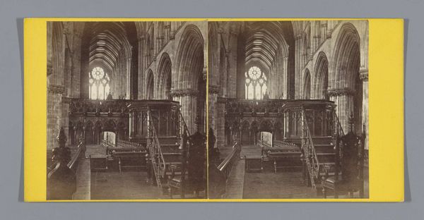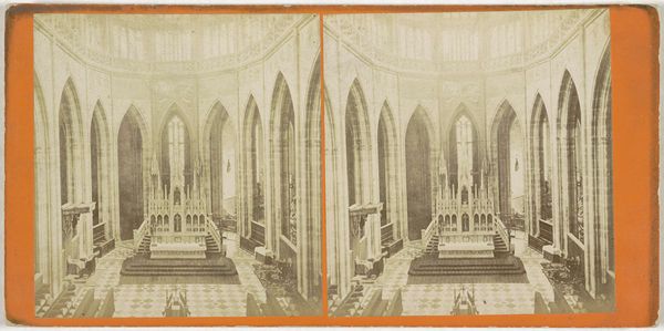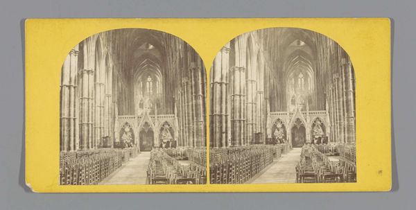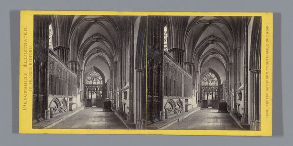 Editor: This is a photograph titled "Interior of Exeter Cathedral" by Francis Bedford, probably taken sometime between 1850 and 1880. It's a gelatin silver print, and what immediately strikes me is the incredible depth and scale of the cathedral. It feels almost overwhelming. What do you see in this piece? Curator: Beyond the technical mastery of capturing such a vast space with early photographic technology, I see a carefully constructed visual argument. Bedford's work here, like much art depicting religious spaces, participated in a broader social narrative. Think about the Victorian era's obsession with faith, empire, and order. The soaring Gothic architecture reinforces notions of hierarchy and divine authority. Editor: So, the photograph is not just documentation; it's also reinforcing certain ideas about power? Curator: Exactly. Consider the angle. We are placed low, gazing upwards, emphasizing the grandeur. The absence of people further enhances the feeling of austere power, a space seemingly untouched by the everyday. How might this image have been received by different social classes? The elite, perhaps, found confirmation of their world order, while others might have experienced a sense of exclusion. Editor: That makes me think about how the church itself, both physically and ideologically, could be a space of both comfort and oppression. Curator: Precisely. Bedford's photograph isn’t simply a picture of a beautiful building. It's a visual record intertwined with the social, political, and religious currents of its time. The framing and even the choice of the gothic style are not accidental, but deeply informed. Editor: I never thought of architectural photography having so much to say! It’s made me consider how buildings and their depictions can be tools that influence social dynamics. Curator: And that’s the power of looking critically.