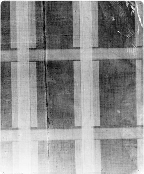 Curator: This is an X-radiograph of a copy of Diego Velázquez's "Portrait of Velázquez," here at the Harvard Art Museums. Editor: It's like looking at the ghost of a painting! All the structure, the canvas, but where's the person? Curator: Precisely. The X-radiograph allows us to see beneath the surface, revealing the hidden layers of creation, and perhaps, the artist's process or even earlier compositions. Editor: I'm captivated by the textures, almost like a woven tapestry. It reminds me that paintings aren’t just images but physical objects with their own histories and vulnerabilities. Curator: Absolutely, and within the context of art history, such analyses provide invaluable insights into authenticity, attribution, and the material culture of art production, which really shapes how we understand the artwork. Editor: It does make you think about what we value. The visible image? Or the story embedded within the structure? It's almost…more honest than the painting itself. Curator: Indeed, it encourages a deeper interrogation of the artistic process and reminds us of the complex layers of meaning inherent in any artwork. Editor: Well, I find myself strangely moved. Like I've seen something intimate. A secret whispered from the past.