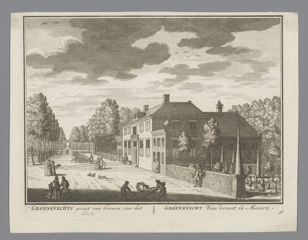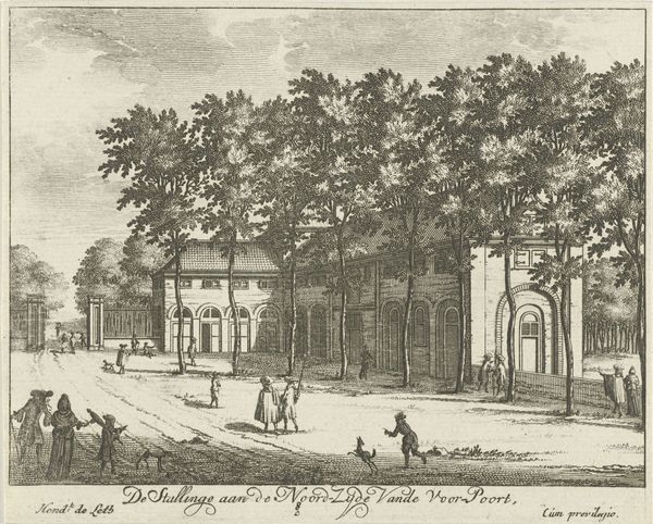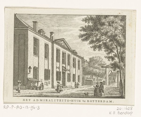 Editor: So, here we have Hermanus Petrus Schouten’s etching, “Gezicht op de binnenplaats van het Sint-Jorishof en de Waalse Kerk te Amsterdam,” from around 1770 to 1783. It's a courtyard scene, very orderly and calm, almost staged. What do you see in this piece, beyond just the surface depiction? Curator: Well, beyond the surface, this image functions as a document of spatial politics. It's not just a charming cityscape; it reveals who was allowed to occupy and circulate within certain urban spaces. Note the figures represented – their clothing, presumed class – and consider who is conspicuously absent. How might this idealized vision mask the complexities of 18th-century Amsterdam? Editor: That's interesting. I hadn't thought about the absence of certain groups. So, the clean, orderly courtyard… is that maybe a deliberate choice to present a specific narrative? Curator: Exactly! Consider the role of the Waalse Kerk, the Walloon Church, in this setting. It represents a specific religious and cultural identity within Amsterdam. The courtyard becomes a stage upon which this identity is performed and reinforced. How does the architectural space itself contribute to a sense of belonging or exclusion? Who do you think would have felt welcome here? Editor: It makes me wonder about the stories that aren’t being told in this image, the realities of people living just outside the frame, people who might not have had access to this tranquil space. Curator: Precisely! It encourages us to look critically at what's presented and question the power dynamics inherent in such depictions of urban life. Editor: I see it now; it's much more than just a pretty cityscape print. It's a snapshot of a specific social hierarchy. Curator: And a potent reminder that art often reflects and reinforces existing power structures. Looking closely at even the most seemingly benign image can unlock important insights into the past and the present.