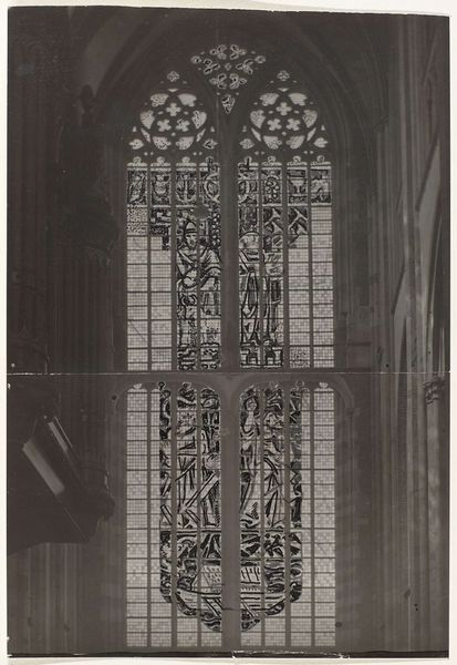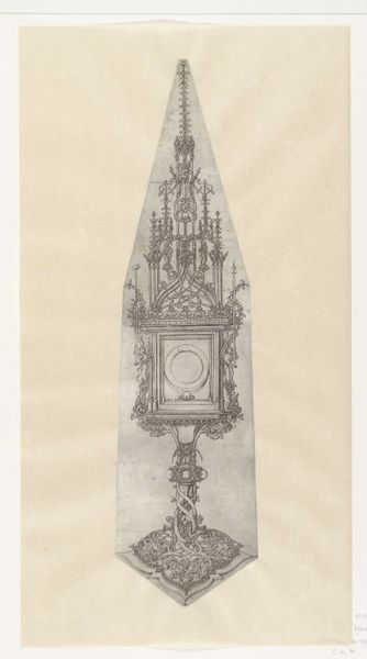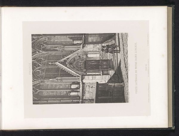 Editor: Here we have an untitled piece by Sir Eduardo Paolozzi. It looks like a photogravure of a clock tower under construction. All those girders! What do you make of this image? Curator: The scaffolding reveals the means of production, stripping bare the clock tower. Paolozzi asks us to consider the labor and materials involved, challenging the romantic notion of timeless monuments. Do you see how the clock face itself is almost obscured? Editor: Yes, it’s like time itself is being deconstructed! The process is the focal point, not the final, polished object. Thanks for pointing that out. Curator: Exactly. By emphasizing the 'how' over the 'what,' Paolozzi critiques our consumption of art and architecture. Something to consider.