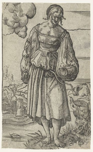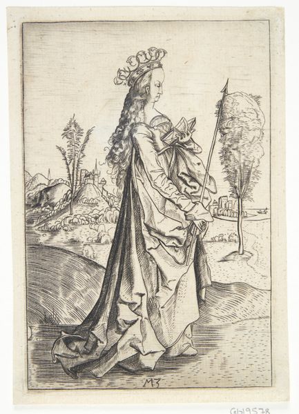 Martin Schongauer made this engraving of Saint Christopher sometime in the late 15th century. In the image, the saint wades through the water carrying the Christ Child on his shoulders. This image speaks to the cultural and social context of the late Middle Ages in Europe. Christianity was the dominant religion, shaping people's beliefs and values. Saints like Christopher were venerated as intercessors between God and humanity, with stories of their lives serving as moral examples for the faithful. The image shows how Christian institutions shaped the production and reception of art. The engraving medium, allowed for the wide distribution of religious images, contributing to the spread of religious ideas and practices. To fully understand the engraving, one might study the history of Christian iconography, the lives of the saints, and the development of printmaking techniques. By situating it within its social and institutional context, we can gain a richer appreciation of its meaning and significance.