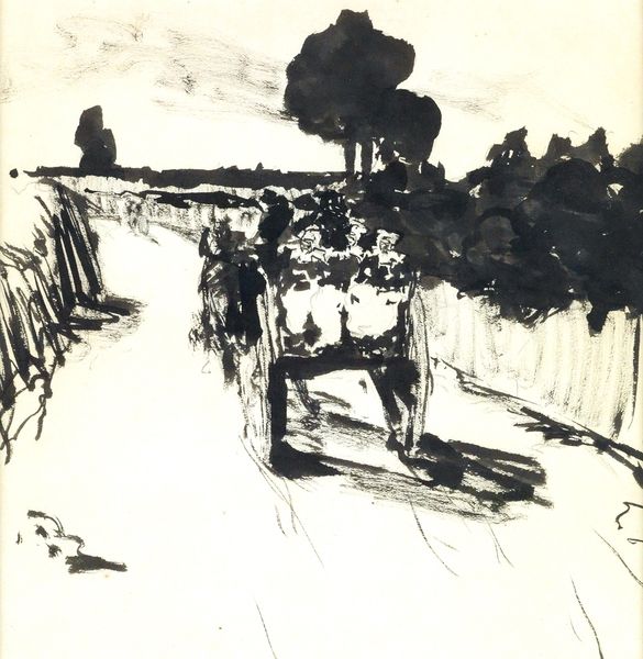 Editor: Henri Matisse's "The Windshield," created in 1917, is rendered in oil on canvas, offering a somewhat unusual perspective. There's a sense of movement, combined with the stillness of the interior space. What do you see in this piece that perhaps I'm missing? Curator: Indeed, it is the dynamic interplay between stillness and kinesis that commands our attention. Note how the composition is structured by contrasting planar forms; the flat picture plane of the dashboard asserts itself against the implied depth of the receding road. The colour, too, works in counterpoint. The muted tones of the interior are juxtaposed against the vibrant greens and browns beyond the glass. Observe how that contrast accentuates the formal divide. Editor: So, you're focusing on how the forms and colours themselves create meaning. The geometry, if you will. I notice that too, how the rigid rectangle of the windshield frames the organic forms of the landscape. Is that tension deliberate, do you think? Curator: It's precisely through such formal tensions that the work achieves its affect. Semiotically, we might consider the windshield itself as a signifier—a threshold, or a boundary—between the subjective interior space and the external world. Matisse's skill lies in rendering this philosophical divide visible through his masterful handling of paint and perspective. Editor: That's fascinating, I had not considered the symbolic role of the windshield itself as a "boundary." Curator: Considering form as the content itself encourages a deeper understanding. A new way of seeing, wouldn’t you agree?