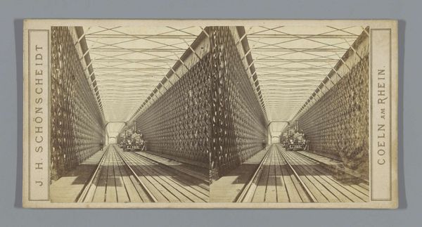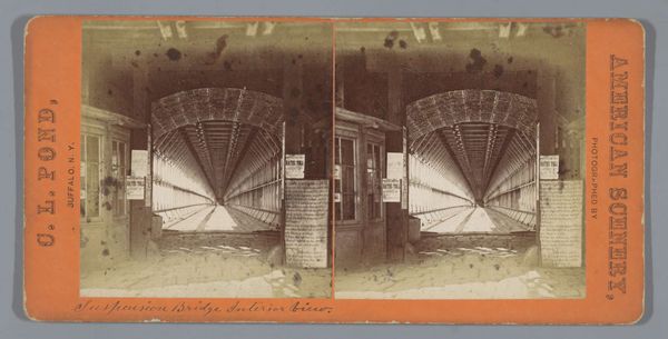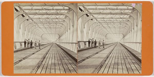 J.W. & J.S. Moulton made this stereograph, Vine Clad Arbor, in Salem, Massachusetts, sometime between 1873 and 1881. This popular form of entertainment allowed viewers to experience a three-dimensional scene through a special viewer. The image depicts a vine-covered walkway, a public space, where people are relaxing on benches. The shadows cast by the arbor create a strong visual pattern, emphasizing the artificiality of this natural setting. This image reflects a growing interest in leisure and the creation of public parks during the late 19th century. As industrialization increased, so did the desire for curated natural spaces. The image also highlights the rise of photography as a medium for documenting and disseminating images of these spaces. To better understand the social and cultural context of this stereograph, one might investigate the history of public parks in the United States, the rise of the photography industry, and the changing leisure habits of Americans during this time. The meaning of art is always contingent on its social and institutional context.