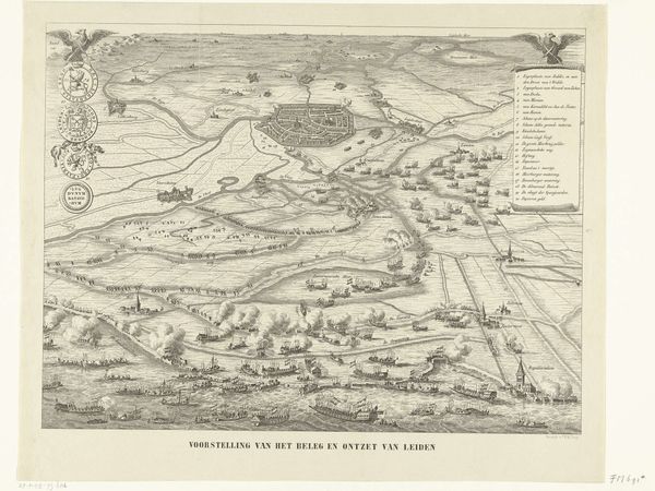 Jacobus Harrewijn's "Beleg van le Quesnoy, 1712," currently at the Rijksmuseum, is an engraving that captures the siege of Le Quesnoy with remarkable precision. The entire composition is rendered in delicate lines and intricate detail, giving it a sense of depth and texture despite its monochromatic palette. The meticulous rendering of the landscape, fortifications, and troop formations is an exercise in control and order, which imposes a structured view of reality. The artist organizes the chaos of war into a legible and rational plan. This act of organizing space extends beyond mere representation; it is a semiotic system of signs that convey power and knowledge. The detailed key, with its numbered references, serves to decode the visual components, offering a narrative structure that transforms the image into a readable text. This fusion of cartography and artistry reflects broader philosophical concerns about the power of representation and the imposition of order onto complex phenomena.