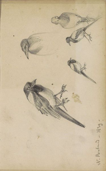 Editor: So, this is “Insects,” a pencil drawing by James Ensor. There's no date associated with the piece, but it feels like a quick, almost whimsical study. What jumps out at you? Curator: It tickles my fancy, actually. It reminds me of scribbling in a forgotten notebook – those idle moments of creation, full of playful exploration. Notice how each insect is rendered with a different level of detail; it’s like he’s letting his mind flit from one creature to the next, capturing only what holds his interest at that particular second. Does it give you a sense of movement, like a page from a naturalist's field notebook, but tinged with fantasy? Editor: Definitely! It’s not clinical, like a scientific illustration. They almost seem to be dancing or floating. Do you think he was deliberately going for a sense of… unease? Curator: Unease, perhaps not deliberately, but that might speak to our modern interpretation. Ensor was a bit of a provocateur. I wouldn't be surprised if he was hinting at the fragility of the natural world, maybe even a bit of morbid humor. Think of these sketches as quick thoughts – fleeting glimpses of life, beauty, and perhaps something slightly more sinister lurking beneath. Does the casual arrangement strike you in any particular way? Editor: Now that you mention it, the placement does feel random, which contributes to that slightly unsettling feeling. I initially thought this was just a simple sketch, but it definitely has more layers than I realized! Curator: Precisely! That’s the joy of art, isn’t it? What starts as seemingly simple often holds depths we never expect. Each line tells a story. Editor: This really shifted how I see sketchbook drawings. I’ll definitely look at them differently now!