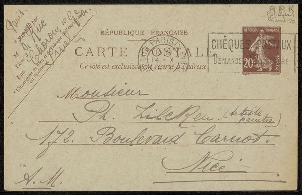 This postcard to Philip Zilcken, was made with ink on paper by Willy Martens. What grabs me first is the way the text is both carefully inscribed, yet smeared and disrupted by the various postal stamps. It’s a reminder that artmaking, like communication itself, is never a pristine act but is affected by chance and circumstance. The color palette is muted, almost monochromatic, giving the card a vintage feel. The ink varies in opacity, creating subtle shifts in tone and texture. The marks from the stamps and handwriting have a rhythmic quality, like musical notation. Look at the way the address curves and flows, like a gesture or a dance across the page. The postal stamps are a really interesting detail, they punctuate the composition. This reminds me of the work of Cy Twombly, whose loose and gestural marks echo the messiness of everyday life, where nothing is ever fully fixed or defined. Art, like a postcard, is an open invitation to multiple readings and interpretations.