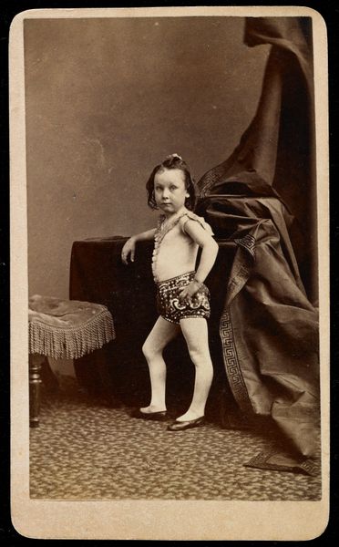 Editor: Here we have "Studie van een naakt, zittend kind," or "Study of a Nude, Sitting Child," a photograph taken sometime after 1880 by Louis Jean-Baptiste Igout. The sepia tone and the child’s withdrawn posture give it a very pensive mood. What do you see in this piece, Professor? Curator: Ah, yes, a fascinating glimpse into the past. This image strikes me as something beyond just a portrait. It almost feels like a captured moment of introspection, wouldn't you say? Consider the realism... the child's form, softly lit, is presented with unidealized honesty. There's an intimacy here that transcends mere observation. Editor: I agree, it's quite intimate. I almost feel like I'm intruding on a private moment. Curator: Precisely! The realism contrasts beautifully with a vulnerability – not just physical, but emotional, too. There's something eternally human captured in that posture, don’t you think? Perhaps this photograph invites us to reflect on the complexities of childhood, far beyond its surface simplicity. Does that resonate with you at all? Editor: It really does. I hadn’t considered it beyond just the surface image, but there's definitely a deeper sense of introspection present. Thank you for opening my eyes! Curator: My pleasure! It's wonderful how art, even in its quietest moments, can speak volumes when we allow it. We never really know why someone chose to photograph an anonymous young subject, or why this image has remained behind for so long.