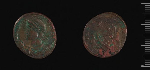 Editor: Here we have a coin of Saitta under Gallienus, part of the Harvard Art Museums collection. It’s amazing to consider how much history is imprinted on this small object. What strikes you about its composition? Curator: Note the stark contrast between the crisp profile of Gallienus and the more amorphous forms on the reverse. The relief of the obverse demonstrates a sophisticated understanding of three-dimensional space within a limited field. Editor: So, the artist's skill is evident in the rendering of depth despite the coin's small size? Curator: Precisely. The artist employs techniques of miniaturization and detail that speak to a mastery of form. Editor: That’s a great observation. Thank you. Curator: My pleasure. Close visual analysis reveals the artistry embedded even in utilitarian objects.