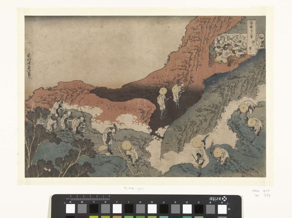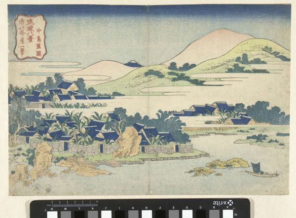 Editor: This woodblock print from around 1770-1775 by Utagawa Toyoharu is titled "Gezicht op de Fudo tempel in Meguro." The bustling figures contrast so sharply with the stoic temple structure; how might we unpack what this contrast communicates? Curator: This piece provides an interesting glimpse into the social context of Ukiyo-e art. How do you think the temple's representation fits into the broader historical trend of depicting sacred spaces in popular prints? Editor: That’s a great question. The temple almost seems secondary to the daily life unfolding around it. Curator: Precisely. In terms of the socio-political aspects, the temple’s prominence in the print indicates the essential role of religious institutions within daily life for common people in the Edo period. But note how that role is represented. The figures appear almost to inhabit the sacred space, engaging in commerce and leisurely activities. Doesn't this print offer us insight into how people interacted with religious sites at the time, almost blurring the lines between the sacred and the mundane? Editor: I see what you mean! It almost feels like a social commentary, reflecting the integration – or perhaps the casual attitude – towards religious spaces. Are there other ways the imagery challenges established hierarchies? Curator: Consider the perspective used, focusing on the experience of the viewer navigating that space and including those various classes and attitudes towards the dominant religious space. Editor: It’s interesting how the temple serves almost as a backdrop. Thank you for pointing out those historical layers; it adds a lot of depth. Curator: And it gives us insight into the reciprocal relationship between art and the public. Thanks for sharing your observations, it truly enriched my view of the piece.