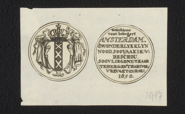 Editor: We’re looking at the front of a 100 karbovanets bill from the Ukrainian National Republic, designed in 1917 by Heorhiy Narbut. It's an example of graphic art printed on paper, and it has this intricate, almost medieval feel to it. What do you see in terms of its formal elements? Curator: Initially, it is important to observe the bilateral symmetry meticulously structuring the composition. Note the centrality of the ornamental cartouche which is itself balanced. The designer contrasts the rigid, geometric shapes, such as the octagonal frame, with the flowing, organic forms of the calligraphic ornamentation. How does this tension influence your understanding? Editor: I see that it creates a really interesting visual rhythm and grounds my eyes towards the center of the composition. I also appreciate the use of line throughout the artwork. Curator: Indeed. Observe the artist’s strategic variation in line weight and density; consider how it generates both depth and visual interest. This linearity accentuates the abstract qualities of the design, transcending the mere function of currency and positioning it as an independent aesthetic object. Can you detect other structural techniques? Editor: Yes! The repeated use of numbers and text in both Ukrainian and what appears to be an older script creates this layered effect and intricate texture. It emphasizes pattern and design over pure readability, doesn't it? Curator: Precisely. The formal arrangement subverts immediate utilitarian concerns, inviting deeper contemplation on the interplay between textual elements and visual design. Consider then how Narbut uses semiotic signifiers beyond their literal monetary function. It becomes a visual language of authority and national identity. Editor: It’s amazing how much can be communicated through these formal choices! Curator: Agreed, by attending closely to these elements we can glean insight into Narbut’s skill and, ultimately, the historical currents and values that underpin its creation.