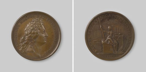 Andreas Vestner created this bronze medal, ‘Peace of Füssen Between Austria and Bavaria,’ its date uncertain. The medal presents two distinct sides, each with its own compositional focus. One side features a high-relief portrait of Maria Theresa, her regal bearing emphasized by the circular inscription. Turn the coin over, and you’ll see an allegorical scene with classical architecture, with the figure of Peace. The composition is meticulously balanced. Vestner employs a semiotic language typical of his time, using recognizable symbols of power and peace. The architectural elements frame the figure, directing our gaze and reinforcing the medal's thematic concern with order and harmony. The inscriptions, acting as both text and design, create a structured border. Vestner’s medal is not merely a historical marker but a carefully constructed object. Its circular form symbolizes unity and completeness, while the tactile quality of the bronze invites a physical connection. The medal encourages us to reflect on the interplay between power, representation, and the artistic construction of historical narratives.
