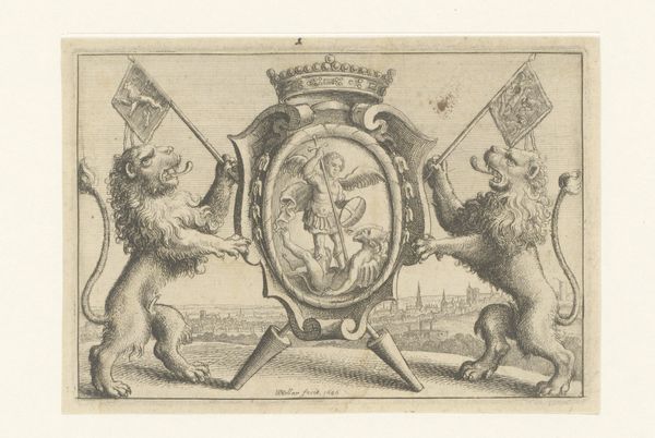 Dirck de Bray created this emblem of the province of Holland around the mid-17th century, employing etching techniques. Dominating the composition is the lion, a symbol of strength and courage, bearing a sword pointed upwards, signifying defense and justice. This heraldic lion, frequently used to symbolize the Dutch Republic, carries with it echoes of ancient Mesopotamian and biblical lion imagery associated with royalty and divine power. We see it throughout history, from the Lion Gate of Mycenae to the Lion of Saint Mark in Venice, each iteration subtly shifting in meaning yet retaining a primal association with power. The collective memory embedded in the image of a lion, and its persistent recurrence in vastly different cultural contexts, tap into deep psychological reservoirs. The image resonates as a symbol of protection, valor, and sovereignty, engaging viewers on an emotional level far beyond its immediate context. Thus, this emblem is not merely a static representation but part of a continuous, evolving narrative.