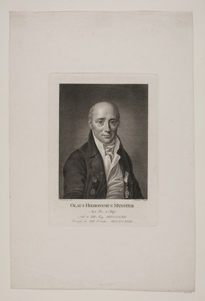 Curator: Here we have "Portret van C. Pruys van der Hoeven", dating from between 1792 and 1867, made by Abram van der Horn. It’s an engraving, a print, isn't it? All fine lines and careful detail. What’s your initial impression? Editor: The man's gaze is strikingly direct. A hint of melancholy, or perhaps just profound seriousness, clings to him like the shadows around his collar. Curator: Engravings like this served as a crucial medium for disseminating images and information. Consider the socio-economic function: creating affordable, reproducible portraits, expanding visual access. Editor: I love thinking about this being like, the meme of its day! Can you imagine sending someone a digital scan of *this* on your phone, versus how precious the experience of having this was then. It also feels so *stiff*, like he's fulfilling some kind of social duty here, rather than letting any spark shine. Curator: That stiffness is characteristic of the Neoclassical influence. A move toward order, reason, and, importantly, restraint. We need to examine the impact of industrial advancements, like improved printing techniques on artistic output. Were more people making work at a higher skill? Editor: Okay, Materialist, slow down, I am getting bogged down with your stuff, so my intuitive spark is diminishing here. Just imagine sitting for that engraving. Hours and hours under scrutiny. His eyes look tired; like maybe the artist just stopped for the day so he can catch some sleep, and Abram captures that moment. You wonder about his story. Curator: Precisely! Now you see where my mind is when it comes to material reality! Understanding that socio-cultural reality *is* part of understanding the impact it has as art, since it influences access, perception and production Editor: Well put. You have certainly managed to pull out my thoughts back on track. It's made me reconsider that direct gaze I saw earlier; the power and quiet confidence of the educated. Curator: And considering this was produced by way of industrial advancements… Editor: Ah, yes... it gives the engraving's presence, as this accessible form, this shared cultural understanding, extra meaning now.