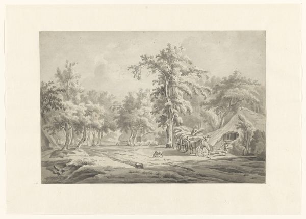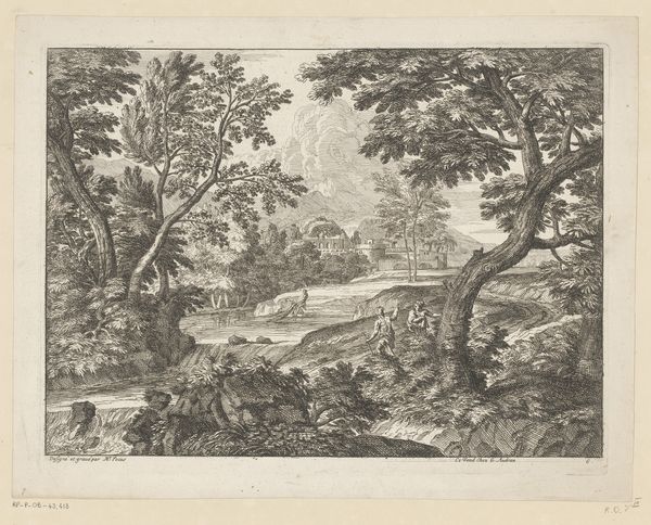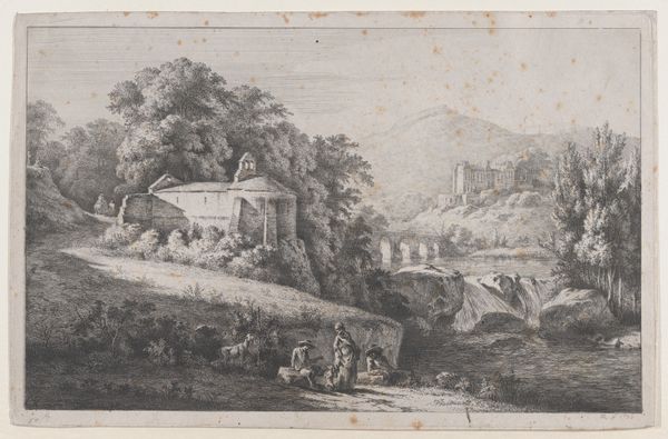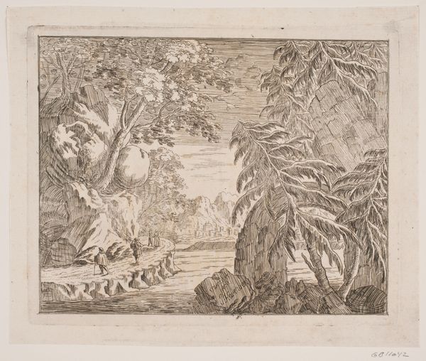 Sebastien Bourdon created this print, “Christ and His Disciples with a Triumphal Arch in the Distance,” using etching. The etched lines define the composition’s tonal range and texture. By varying the depth and density of these marks, Bourdon creates a sense of light and shadow, depth and form. The etching technique itself has social implications. Prints like these made art more accessible, extending the reach of religious narratives to a broader audience beyond the elite circles that commissioned paintings. Consider the labor-intensive nature of etching: from preparing the metal plate to the precise application of acid. Bourdon's skill in manipulating these processes is evident in the print's intricate details and subtle tonal gradations. By emphasizing the materiality and making of this print, we see how it bridges the gap between artistic expression, skilled craft, and wider access to religious art.
