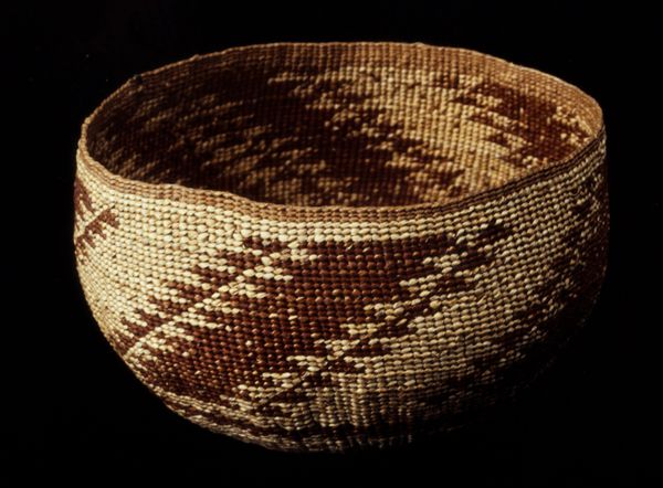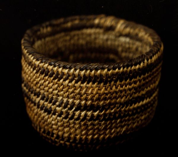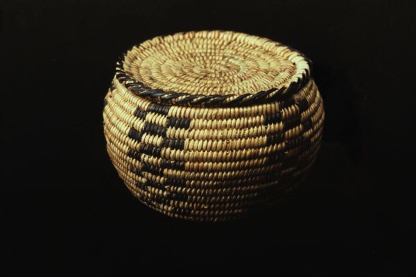 This basket was made by the Tohono O’odham, or Papago, people, and its warm, earthy tones really speak to me. Look at the way the dark fibers dance against the lighter ones, creating these striking geometric patterns. I love thinking about the hands that carefully wove each strand, the patient rhythm of creation. You can almost feel the texture, the give and take of the materials. It's not just about function, right? It’s about the artistry imbued in every coil. Notice the way the darker fiber is distributed. It reminds me of the way that a painter like Paul Klee might approach a canvas – building a work up from small, distinct marks that when viewed together give the whole piece its form. This reminds me that art is all about process, about engaging with the world in a tactile, thoughtful way. It's a conversation that extends beyond any one piece, echoing across cultures and time. It’s about embracing the beauty of imperfection, of seeing the world not in fixed meanings but in endless possibilities.
