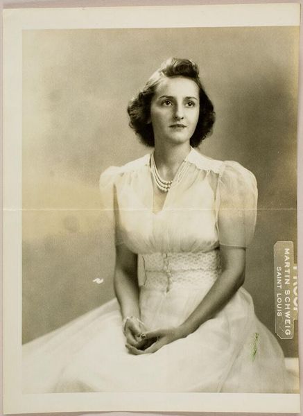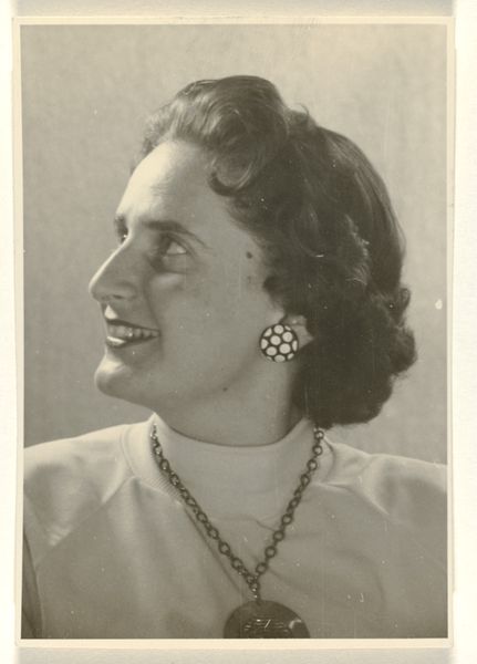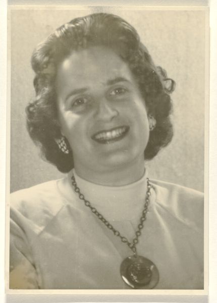 This is a black and white photograph of Isabel Wachenheimer, made by an anonymous artist. Isabel wears a turtleneck and a necklace with a musical note pendant. The absence of information on its maker makes it tempting to see this image through a wider historical lens. Photographs like this one often served a documentary function. Looking at the way the subject is dressed and styled can tell us about social conventions of the time. The musical note pendant may point to Isabel's cultural interests or professional activities. Perhaps she was a musician or music teacher, or maybe it was a fashion statement. Visual Culture studies can help us understand the photograph as a cultural artifact that embodies social meanings and values. What stories might this image tell us about the sitter’s life? Further research in archives, libraries, and databases could provide further context and reveal the deeper significance of this seemingly simple portrait.