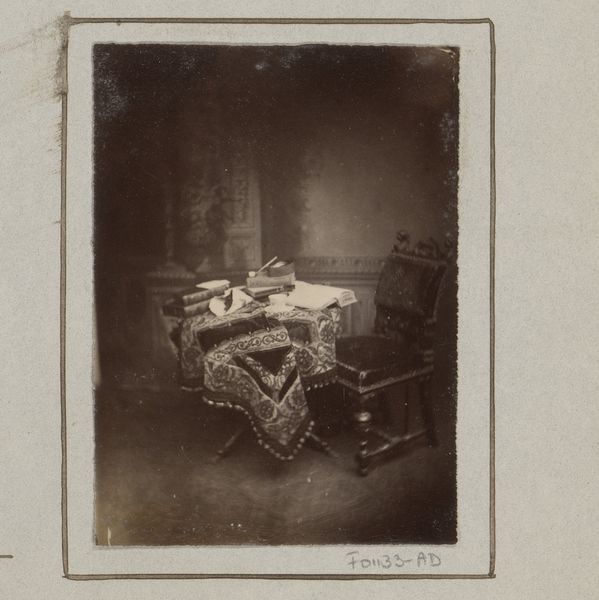 Hendrik Herman van den Berg's photograph invites us into his personal space at Turfmarkt 3 in Amsterdam. As a Dutch artist who lived through both World Wars, the domestic sphere held particular significance during times of immense social upheaval and displacement. We see a room teeming with objects—busts, photographs, a fur-covered chaise lounge—each potentially holding personal and artistic meaning. The arrangement feels intimate, almost like a self-portrait through objects, revealing the artist’s interior world. The sepia tone evokes a sense of nostalgia, but also a sense of the past being actively lived in. It asks us to think about the way personal spaces become archives of memory and identity. I wonder about the unnamed sitters of the portraits and the stories attached to them. What did it mean for van den Berg to surround himself with these images and objects? There's a quiet intensity to the photograph, a sense of someone trying to anchor himself in a rapidly changing world, finding solace and inspiration within the confines of his own room.