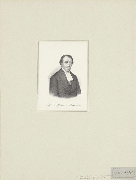 Curator: Here we have an untitled portrait by Joseph Andrews, who lived from 1806 to 1873, currently residing in the Harvard Art Museums. Editor: The engraving is struck by the stark contrast between the figure's meticulous detail and the surrounding void. Curator: Andrews was a skilled engraver, and portraits like these were instrumental in shaping public perceptions of prominent figures in 19th-century society. Consider the sitter's role and status. Editor: The precision in rendering the textures of his coat and the subtle nuances of his expression are captivating, regardless of historical context. Curator: Indeed, and the fact that it's untitled speaks volumes, doesn't it? It invites us to consider the power dynamics inherent in portraiture. Editor: I agree, it prompts one to consider the subject's identity in relation to the gaze of both the artist and the viewer. Curator: A fascinating intersection of artistic skill and social commentary. Editor: It truly is, a study in lines and layers.