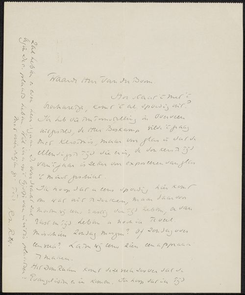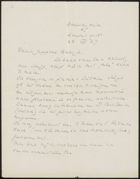 This is a letter written by Richard Nicolaüs Roland Holst, dated May 19, 1935. The materials are simple: paper and ink. The process is straightforward: handwriting. Yet, this belies the real story here, which involves a network of intellectual exchange. Holst uses ink to inscribe his thoughts, forming a direct link between mind and matter. But letters like this one rely on postal networks, a system of social and physical infrastructure which facilitates the circulation of ideas and maintaining relationships across distance. Looking closely, one sees the evidence of Holst’s thinking—scratches, corrections, afterthoughts. The letter reflects his skill in using the written word as a tool of communication. Yet, it also hints at the wider systems of labor and exchange necessary for such communications to occur. Ultimately, this letter reminds us that even the most personal forms of expression are embedded in wider material and social contexts. It challenges us to consider the intricate connections between creative practice and society.