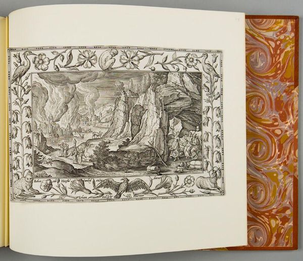 Curator: This is Adriaen Collaert's engraving, "The Sacrifice of Isaac, with Guinea Pig, Rabbit, and Monkey" from the late 16th or early 17th century. The print is located here at the Harvard Art Museums. Editor: The detail is incredible. The way he's articulated the textures of the animals is quite fascinating. And there is so much depth created by the delicate, layered lines. Curator: It's thought that prints like this one circulated widely, allowing those without access to original paintings to engage with biblical narratives. Editor: It's an odd combination of the sacred and profane, wouldn't you say? The sacrificial scene is framed by the rather secular imagery of animals and decorative foliage. It's unsettling. Curator: Perhaps the animals are symbolic, acting as reminders of God's creation and providence. Or maybe the inclusion of such quotidian imagery was a way to normalize the extreme, making the scene more palatable. Editor: It's the linear precision that gets me—the way the stark contrasts and gradients form the composition, guiding the eye through Collaert's complex symbolic world. Curator: The politics of imagery in religious prints of this period were complex and contested, especially with the rise of Protestantism. It's a fascinating intersection of faith, art, and social change. Editor: Ultimately, it's the aesthetic impact that resonates most profoundly, the masterly execution of this unsettling composition.