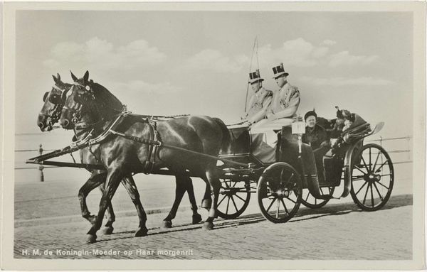 Curator: Looking at Stieglitz's "A Snapshot, Paris," likely captured between 1911 and 1934 using a gelatin-silver print, I'm immediately struck by its stillness. It's a moment of quietude in what I imagine was a bustling city. What’s your first impression? Editor: My first impression is of work, plain and simple. The cobbled ground, the piled logs, the burdened horse – there is no romanticization here. It’s a scene of animal and human labor. Curator: Yes, but look closer. There’s a tenderness. The man's hand reaching for the horse's face. It transcends just work; it's a shared moment, almost symbiotic, don’t you think? And captured with such intimacy—that’s Stieglitz's genius! Editor: Intimacy through whose lens? We see what Stieglitz wants us to see. What’s absent is equally important—where’s the client expecting their logs? Who benefits from this exchange of labor? It's crucial to acknowledge this image’s existence as a product of specific societal and economic conditions. Curator: Absolutely, context is king. But let’s not forget the material itself, this gelatin-silver print – the textures it coaxes out, that hazy almost dreamlike quality. Stieglitz championed photography as fine art, elevating these “snapshots” beyond mere documentation. Editor: Precisely, the transformation of raw material into “art” requires unpacking. This wasn't just about capturing a pretty scene. Think of the labor involved in producing gelatin-silver prints, from manufacturing chemicals to developing the image. The materials themselves contain histories of extraction and industrialization. Curator: And by presenting everyday life, as raw as it may be, Stieglitz invites us to reflect on our own human experience, to find beauty in the mundane. Perhaps it's a call to slow down, observe, connect... even with the animals who share our toil. Editor: I’ll concede that it holds an enduring quality – a visual record of human-animal partnership amidst demanding circumstances. It forces us to contemplate the material realities of the time and how images, seemingly simple, can mask the broader economic structure. Curator: A collaboration of lives captured as it was. Seeing it has stirred up some thoughts that'll stick with me for a while, a memory unearthed, maybe. Editor: Agreed. The value of something like this is in it is as a material trace of past labour and allows reflection and deeper questioning.