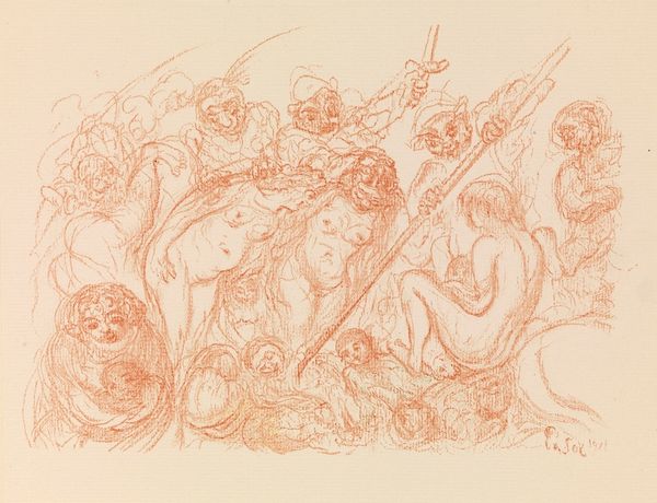 James Ensor made "Flagellation" with chalk. It's all in one color, like a memory fading or a dream half-remembered. Ensor's got this scratchy, nervous line going on, which gives the whole scene a sense of unease. The figures are all tangled up, and you can barely tell what's happening. It’s like he’s not trying to show us the actual event, but more like the feeling of chaos and cruelty. Check out the way he uses the chalk. It’s light in some spots, and then really dark and dense in others. Those darker areas feel heavy, like shadows closing in. And the way the lines are all scribbled and messy? It's like the violence is exploding right off the page. I'm reminded of Goya's etchings, that same darkness, that same feeling that something's not quite right with the world. Art's not always pretty, sometimes it's a scream.