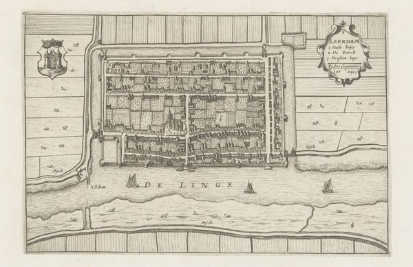 Editor: Here we have an engraving from 1632, "Plattegrond van Heukelum," an anonymous cityscape drawing. The details of the architecture are really striking. What do you see in this piece that might go beyond just its aesthetic appeal? Curator: I see a visual manifestation of power, control, and the emerging mercantile class in the Dutch Golden Age. Look at the town's layout. How might the grid structure and fortified walls reflect not just urban planning but also social hierarchies and the need for protection in a time of upheaval? Consider, too, the perspective. Editor: The almost bird's-eye view? Curator: Exactly. Who has access to this vantage point, both literally and figuratively? And what does it mean to have this comprehensive view of the town's resources, defenses, and inhabitants? This isn't just a map; it's a statement of dominance. We also should question what the absence of marginalized communities within the cityscape represents in this era. Editor: So it's about reading the silences, too, and understanding the social dynamics represented, and unrepresented, in the drawing itself. Is the focus on the commercial areas of town an intentional representation of that era? Curator: Precisely. By emphasizing specific buildings and neglecting others, it implicitly endorses those priorities. What isn't shown tells us just as much as what is. It pushes us to think critically about who is included and excluded from these historical records. What lessons can be applied in contemporary urban settings? Editor: This makes me think about urban development and how marginalized communities are sometimes erased from city planning now. That's definitely not something I had considered just looking at the aesthetic qualities of the drawing itself! Curator: Exactly! Using this framework, historical pieces aren't just artifacts but tools that we can apply when thinking about critical change in today's societies.
