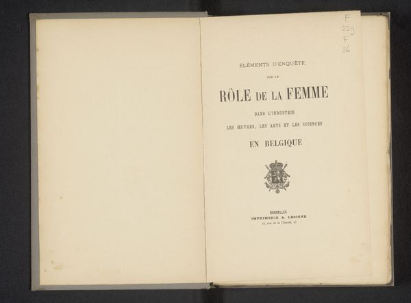 This book, entitled "Elements of inquiry on the role of women in industry, the arts and sciences in Belgium" was printed by A. Lesigne in Brussels. The volume itself is a testament to industrialized book production. With its machine-cut paper, mechanically applied gold trim, and standardized typeface, it speaks to the efficiencies of late 19th-century printing. But consider the text within. The title is suggestive of a social project: an “inquiry” into women’s labor, perhaps an attempt to advocate for their increased recognition. The existence of such a project raises key questions: what kind of labor were women performing at this time? What biases and gendered expectations did they face? And how did they manage to contribute to the economy despite these challenges? Seen this way, the book itself takes on additional meaning. It becomes a symbol of both the industrial system that commodified labor and the social movements that sought to address its inequalities. It reminds us that even seemingly straightforward objects can be deeply embedded in their historical context.