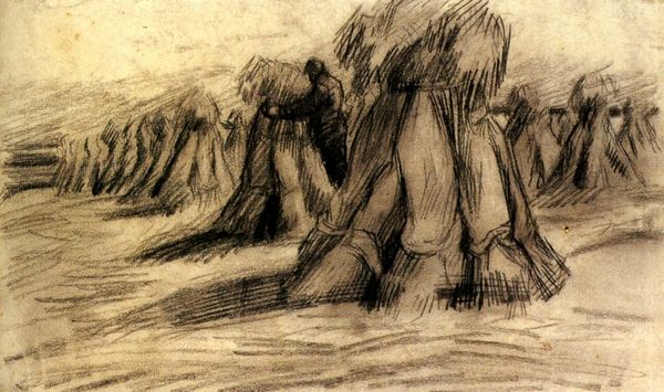 Vincent van Gogh made this drawing with pencil and ink on paper, depicting "Five Men and a Child in the Snow". This work, like much of Van Gogh’s oeuvre, offers a window into the social realities of the late 19th century. The somber tones and stark depiction of figures in a snow-laden landscape evoke the hardships faced by the working class in Europe at the time. Consider the rapid industrialization and urbanization that transformed Dutch society, creating stark contrasts between the wealthy elite and the struggling masses. Van Gogh's choice of subject matter, focusing on ordinary individuals in a moment of everyday life, reflects his commitment to portraying the dignity and humanity of those often overlooked by mainstream artistic circles. His personal letters and writings provide valuable insights into his social consciousness and artistic intentions. As art historians, we delve into such resources to unravel the complex interplay between art, society, and individual expression.