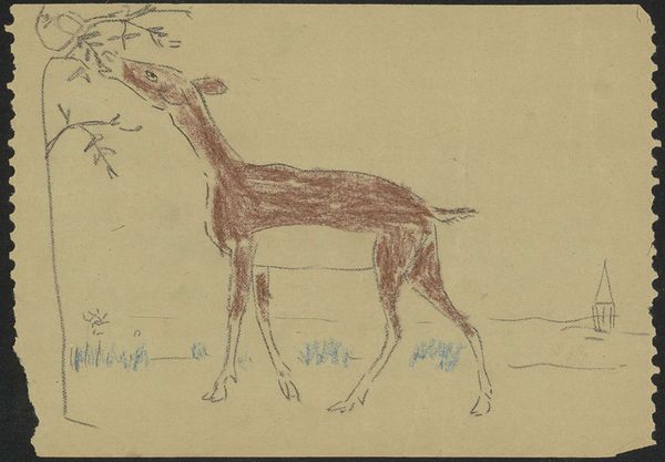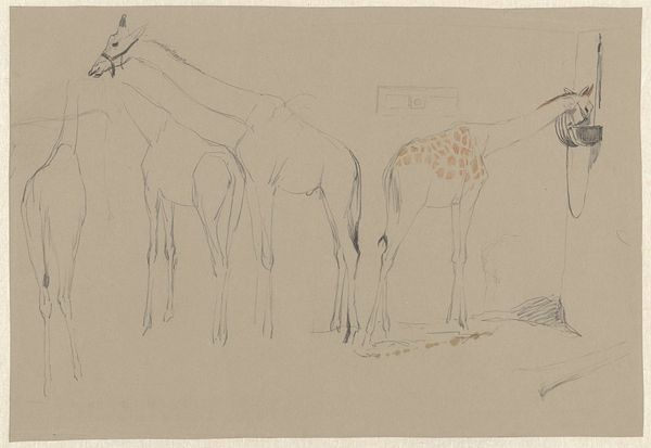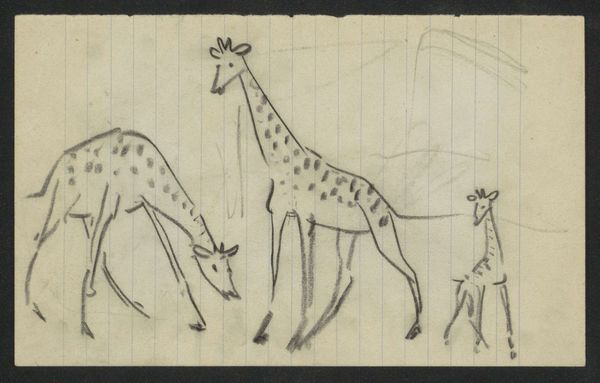 Gerrit Willem Dijsselhof created "Two Giraffes" using graphite on paper. Dijsselhof came of age during the Dutch colonial era. The giraffe, an exotic animal from colonized lands, became a symbol of both the natural world and imperial power. At the time the work was made, representations of animals like giraffes were popular. These depictions played into the public's fascination with the exotic and the unknown, which was often filtered through a lens of colonial dominance. How might seeing these giraffes, presented in simple lines, challenge or uphold those views? The emotional effect of this piece is subtle. It invites us to consider the relationship between humans and the natural world, and the impact of our historical relationship on the animal kingdom. Dijsselhof’s sketch prompts reflection on how we perceive and interact with the world around us.