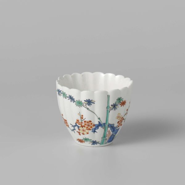 This little cup, "Kop zonder oor," was painted with watercolor by N.V. Plateelbakkerij Ram. The way the colors swim together reminds me of artmaking as a process, always fluid and changing. The colors are so gentle and seep into the surface, which is just a bit rough and bumpy. It’s all very tactile. You can practically feel the artist’s hand moving, swirling those pastel watercolors around to form a garden. Look at how the brush dances around the edges of the flower in the center. It is a lovely splash of red, yellow, and blue and how the thin green lines make looping and curling patterns. All these soft blooms and tendrils remind me of Elizabeth Murray’s paintings, but in miniature. This cup is like a whole other world. Isn’t it amazing how art can do that?