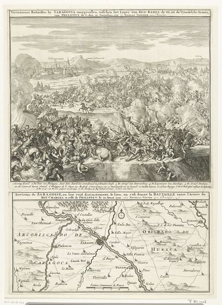 This is a section of a map, made in 1629 by Salomon Savery, depicting Frederik Hendrik’s siege of Den Bosch. It’s made using engraving, a printmaking technique where lines are incised into a metal plate, which is then inked and printed. The material qualities of the print are striking: the fine, precise lines delineate the layout of the siege with remarkable clarity. The technique allowed for mass production of these maps, turning information into a commodity and fueling public interest in military campaigns. Look closely, and you’ll notice the incredible detail: from the fortifications to the tiny figures of soldiers and civilians. The repetitive action of incising each line speaks to the immense labor involved in creating such a detailed image. The print testifies to the intersection of art, craft, and commerce in the 17th century. By appreciating the material and the making, we recognize the role of printmaking in shaping public opinion and historical narratives.